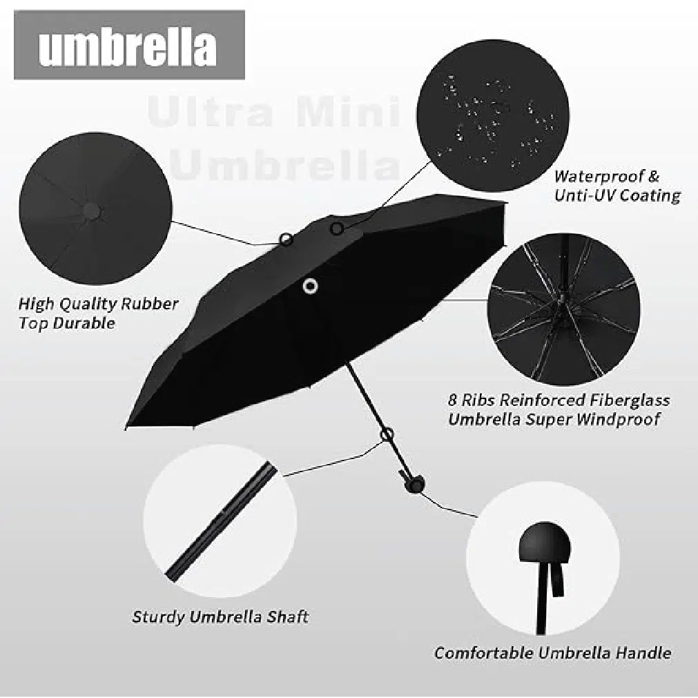 এই capsule umbrella অত্যন্ত ছোট এবং foldable design হওয়ায় সহজেই handbag, backpack বা pocket এ রাখা যায়।