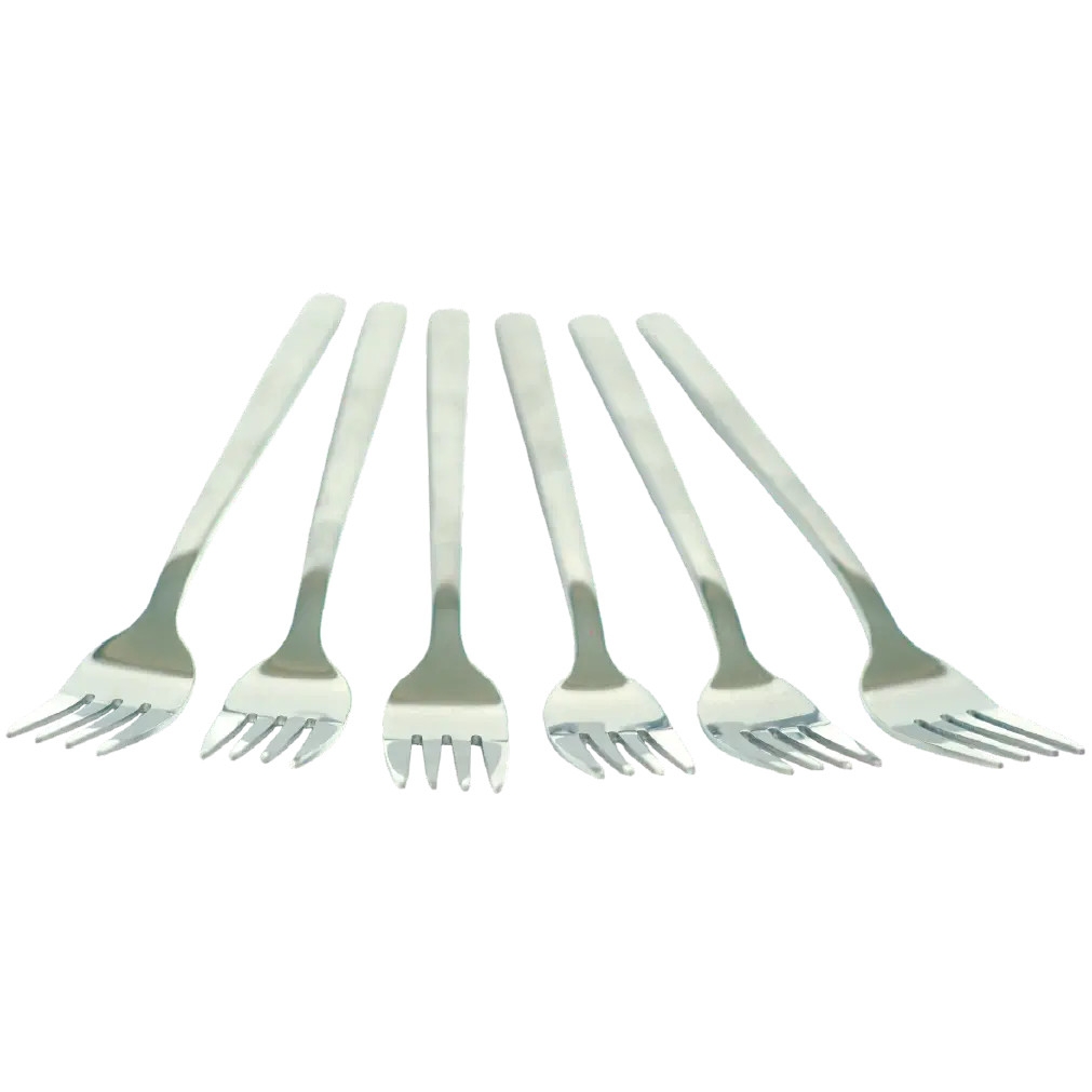 এই ফর্কগুলো তৈরি করা হয়েছে ফুড–গ্রেড স্টেইনলেস স্টিল দিয়ে, যার ওপর রয়েছে টেকসই গোল্ড PVD কোটিং। নীল রঙের বিশেষ টেক্সচার্ড হ্যান্ডেল হাতে নিলে আরামদায়ক অনুভূতি দেয় এবং দীর্ঘ সময় ব্যবহারে ক্লান্তি আনে না।