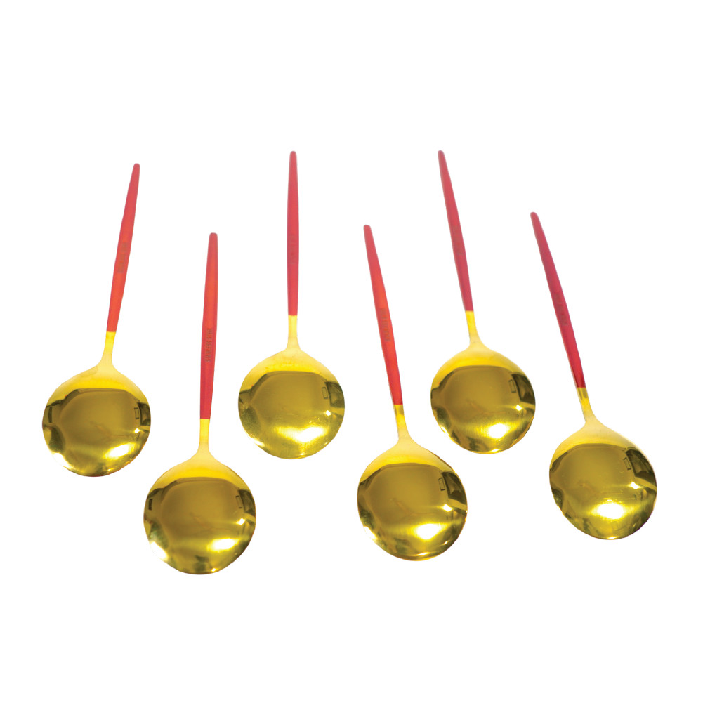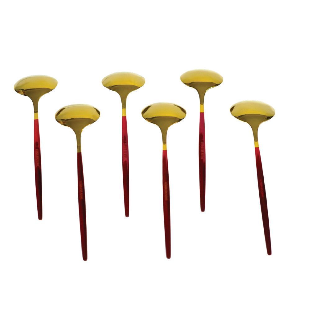 আপনার খাবারের প্রতিটি মুহূর্তকে আরও বিশেষ করে তুলতে Rimisbd নিয়ে এলো Royal Gold লাল হাতল স্যুপ চামচ সেট।